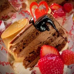 ルーローショコラ&ガトーショコラの黒ごまパイ添え、ヴァレンタインデザート仕上げ。