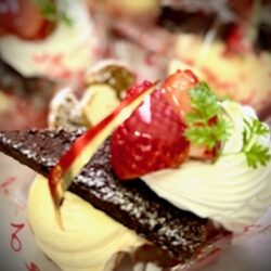 ティラミスブッセ、ベイクドチーズケーキ&ガトーショコラのデザート仕上げ。