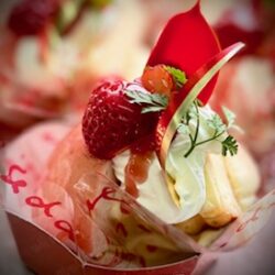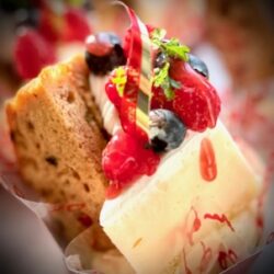 フルーツケーキ&レアチーズケーキのベリー添え、デザート仕上げ