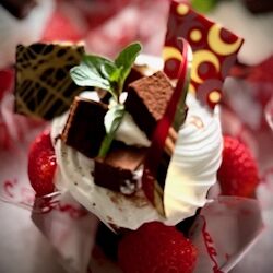苺と生チョコ&ショコラモエルのカスタードクリーム入り、デザート仕上げ。